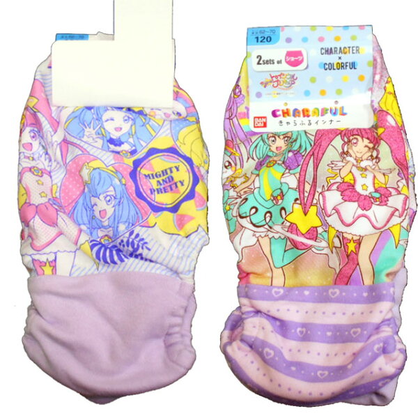 トゥインクルプリキュアの2Pショーツ (2枚組下着)です きらきらのラメプリントのフロントデザインと 総柄デザインの2枚がセットになっています◎ さりげなくついているリボンもポイントです♪