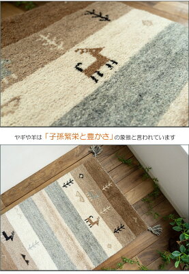そこで!もっと手軽に 『ギャべ緞通』を楽しんでいただきたい!! という思いで作られたのが、 この『インド・ギャべ緞通』です! 天然ウール100% ウール素材の中でも厳選された高品質ウール 「PURE NEW WOOL」を使用。