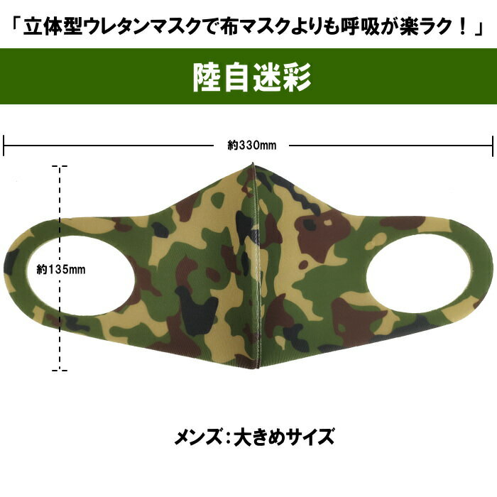 陸上自衛隊 迷彩 マスク メンズ ウレタン製(洗える ウレタンマスク おしゃれ ファッションマスク 大きいサイズ 大人用 男性用 通気性抜群 快適 サバゲー ミリタリー アウトドア 陸自迷彩 カモフラ 布マスク)