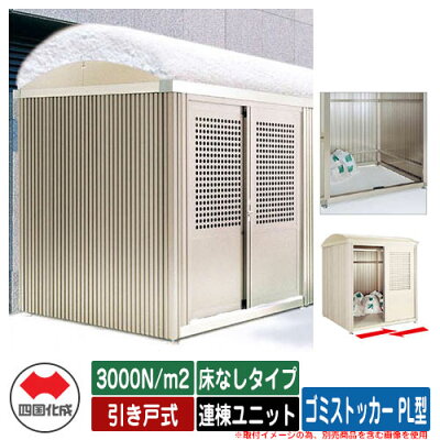 四国化成工業 ゴミステーション 大型ゴミ箱 お客様組立 【引き戸式・床なし】シコク ゴミストッカー PL型 連棟ユニット LGSPLS-HNA2025(積雪荷重3000N/m2) ※受注生産※送料無料