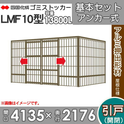 四国化成工業 建材事業 集合住宅 ゴミストッカー LMF10型 GSM10-A4020 引き戸式 アルミ屋根 アンカー式 間口4135mm×奥行き2176mm×高さ2085mm 容量13800L 大型ゴミ箱 町内会 集合住宅 マンション アパート 店舗 業務用 公共施設 屋外用