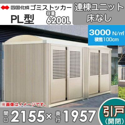 四国化成工業 建材事業 集合住宅 ゴミストッカー PL型 引き戸式 床なし 連棟ユニット LGSPLS-HNA2025SC 間口2155×奥行1957×高さ2275 容量6200L 積雪荷重3000N m 大型ゴミ箱 町内会 集合住宅 マンション アパート 店舗 業務用 公共施設 屋外用