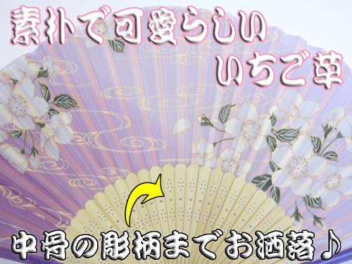 素朴で可愛らしいいちご草の名前入りシルク扇子!いちご草は”変わらぬ愛情””友情”などの花言葉があります。