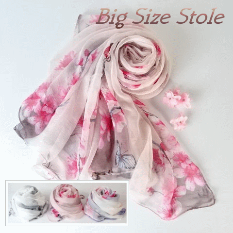 【ポイント10倍&10%OFFクーポン】ビッグサイズシフォン地ポリエステルスカーフ胡蝶大判ロング(145cm×180cm)「ホワイト/ピンク/ブルー」メム