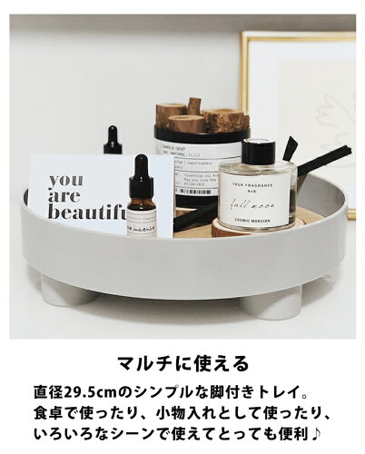 お盆 トレー おしゃれ 木製 トレイ おぼん 小物入れ 丸 円 ラウンド 北欧 カフェ風 インテリア 雑貨 白 卓上 デスク 化粧品 アクセサリー 収納 ケース ウッド マルチ トレー 観葉植物 ディスプレイ 29cm コンパクト かわいい 脚 脚付き 韓国 インテリア雑貨 int388【P】