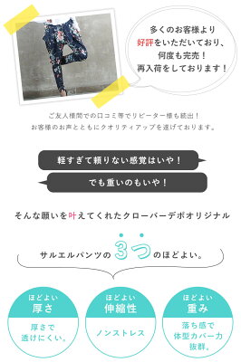 -->驚きの体型カバー力!美脚効果!クローバーデポのサルエルパンツ ヘビーリピーター続出!お客様に愛され改良を加えながら成長してきたクローバーデポのサルエルパンツ。